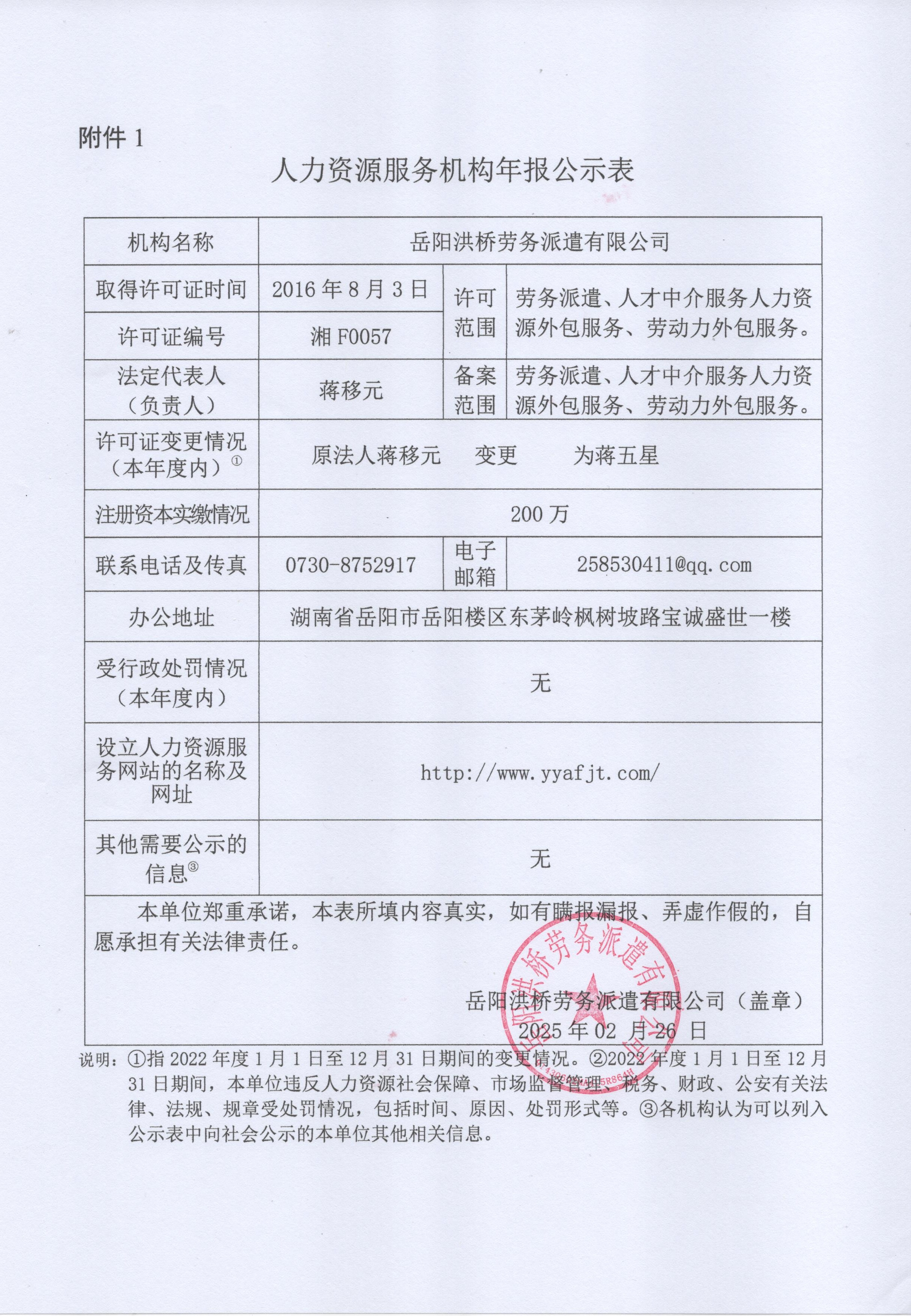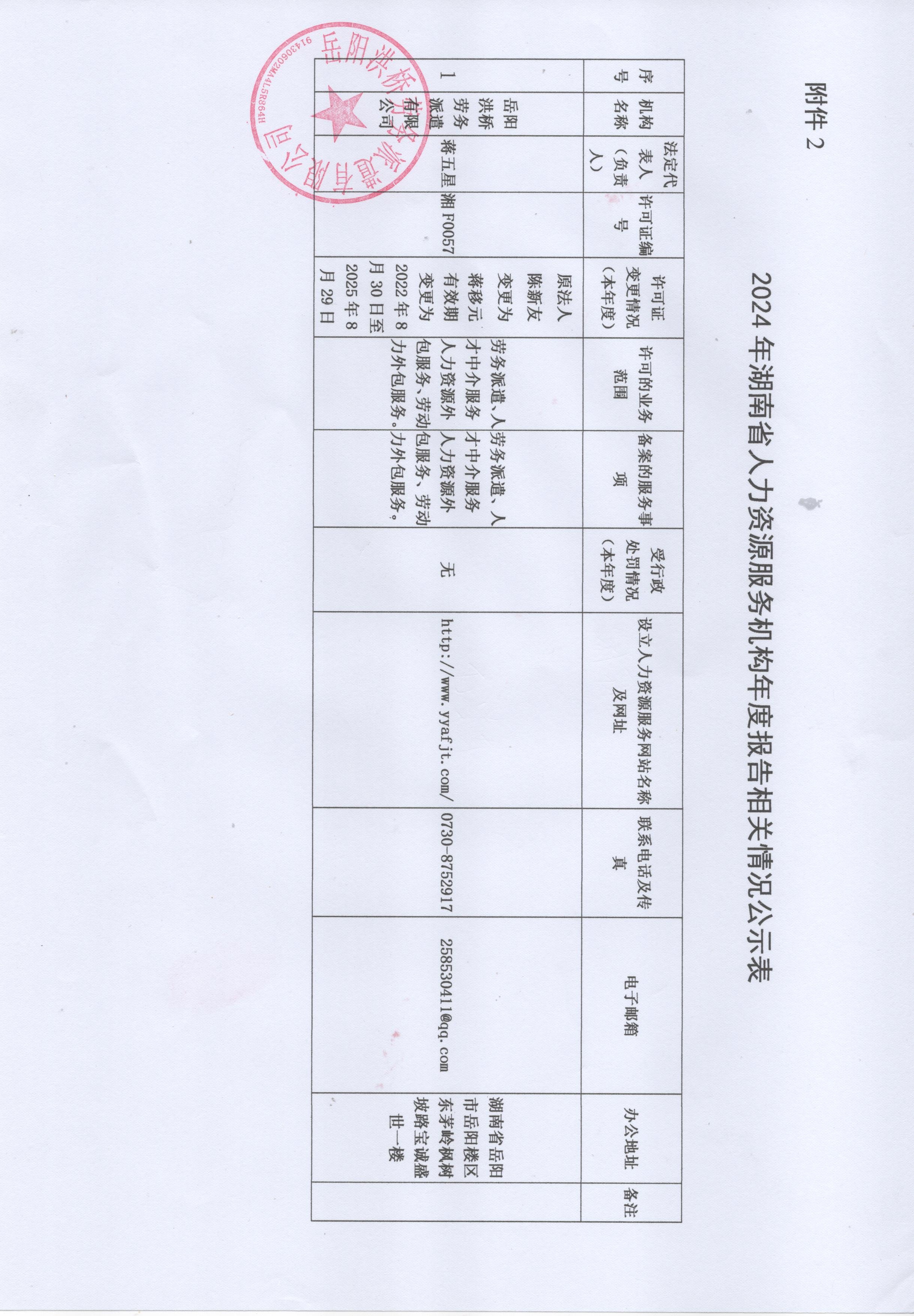岳陽洪橋勞務(wù)派遣有限公司公示表